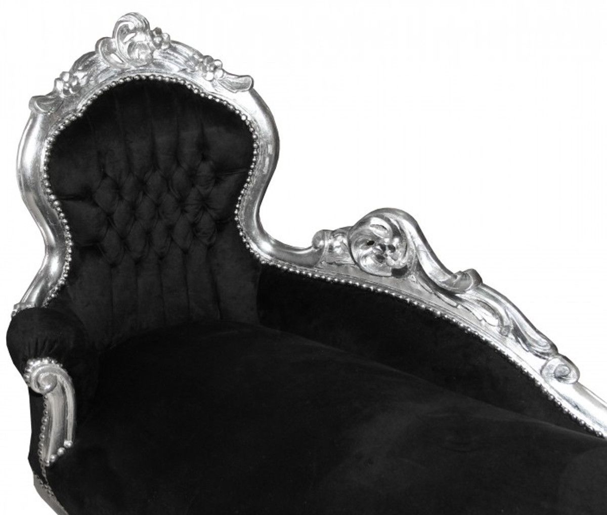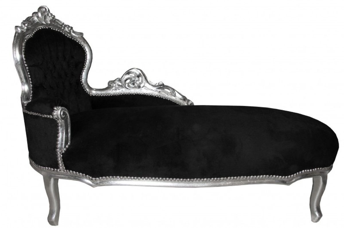 Casa Padrino Barock Chaiselongue "King" Schwarz/Silber- Antik Möbel