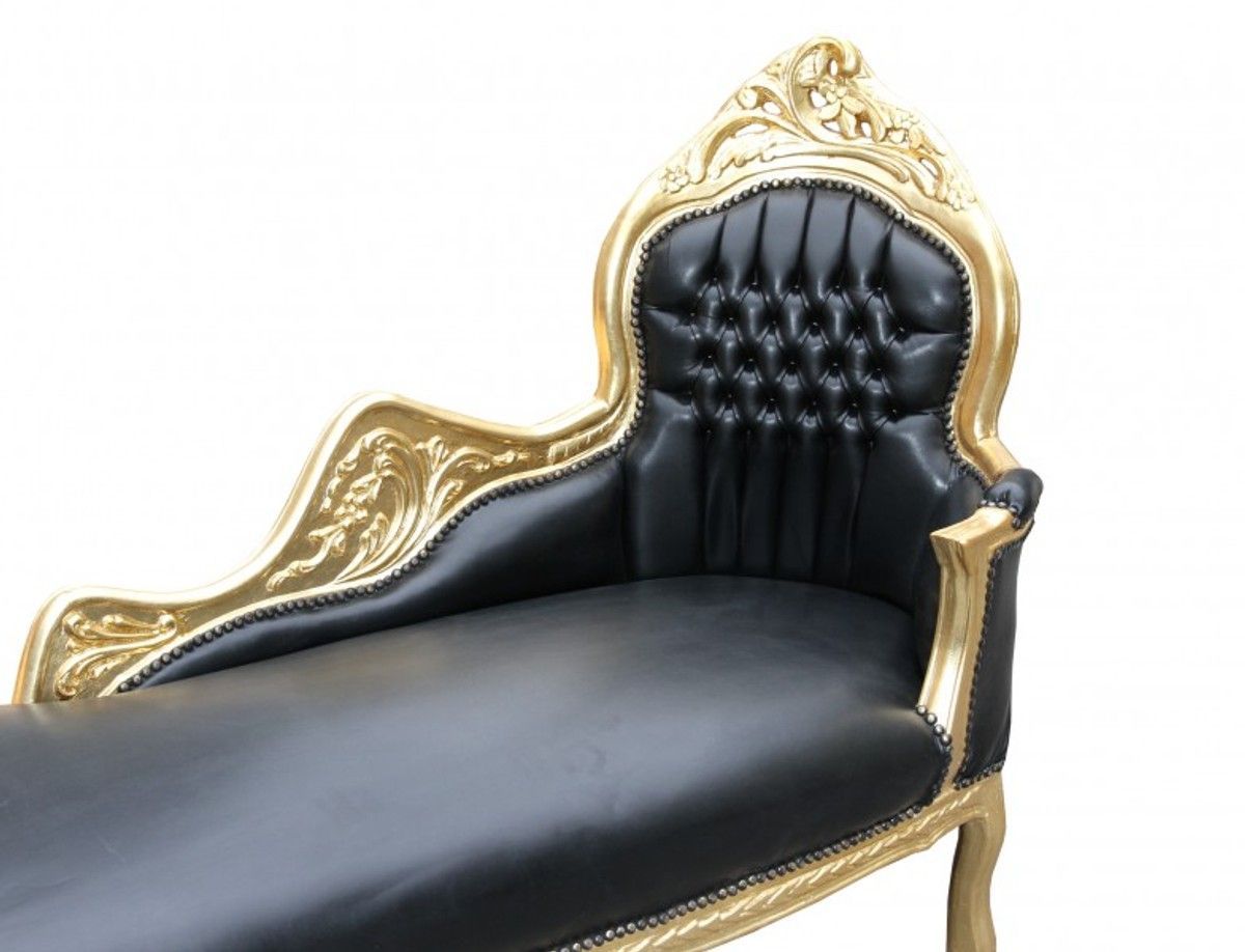 Casa Padrino Barock Chaiselongue Mod2 Schwarz/Gold Lederoptik- Barock Möbel