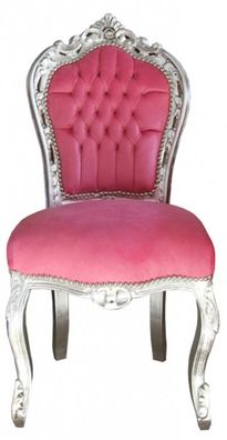 • Casa Padrino Barock Esszimmerstuhl Pink/Silber ohne Armlehnen