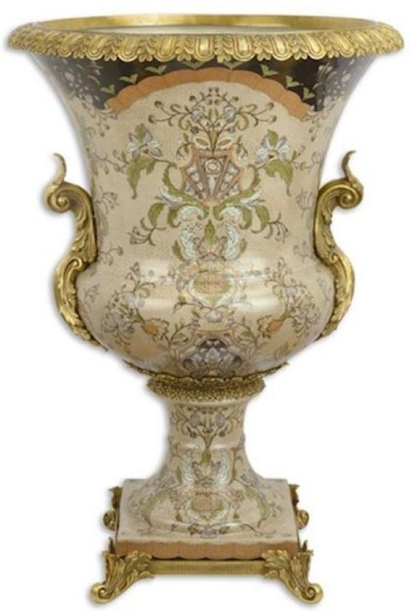 Casa Padrino Barock Deko Porzellan Vase Mehrfarbig / Messingfarben Ø 52 x H. 75,5 cm