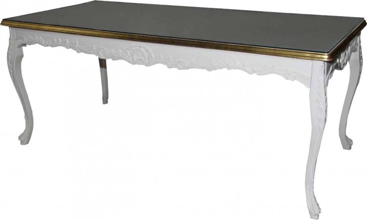 Casa Padrino Barock Esstisch leicht Cremebarben/Gold 200 cm x 90 cm- Esszimmer Tisch