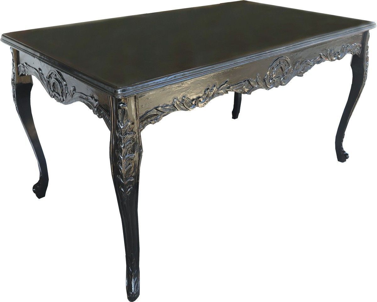 Casa Padrino Barock Esstisch Schwarz mit Glasplatte 200 x 100 cm - Esszimmer Tisch