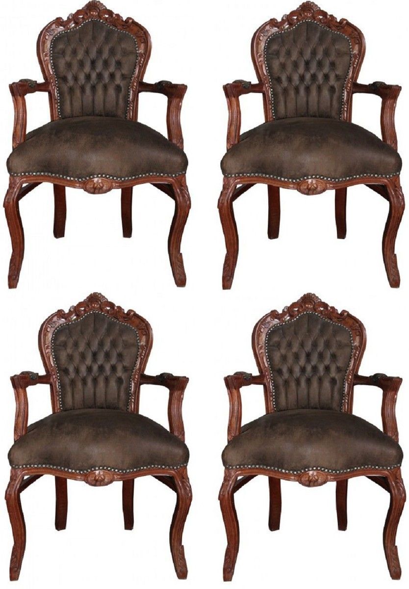Casa Padrino Barock Esszimmer Set Braun / Braun Lederoptik 53 x 57 x H. 108 cm - 4 ha