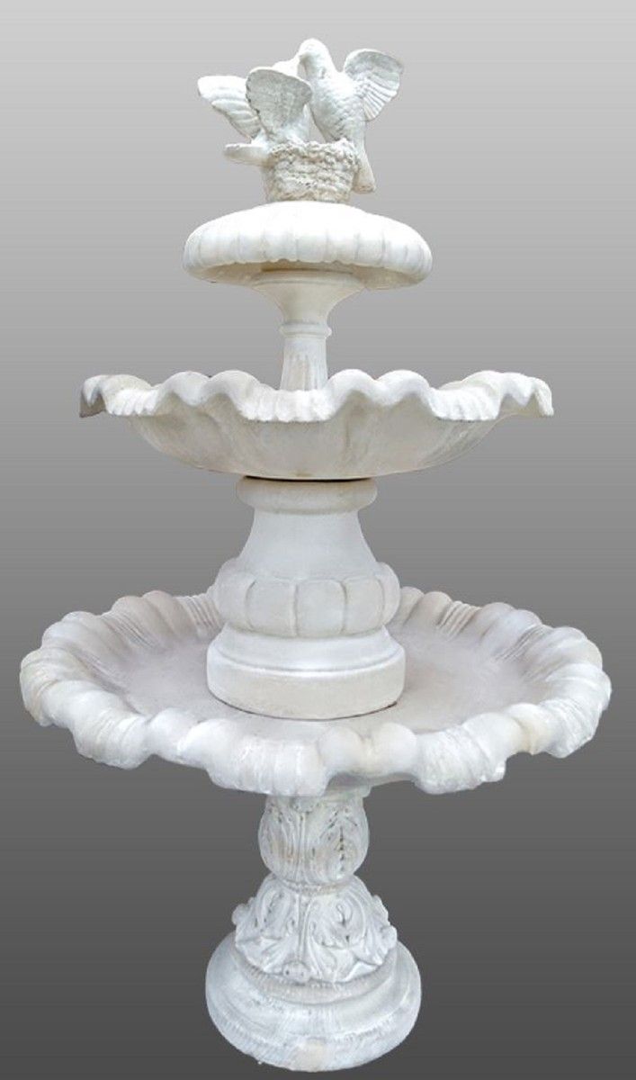 Casa Padrino Barock Gartenbrunnen / Springbrunnen mit Tauben Weiß Ø 100 x H. 210 cm