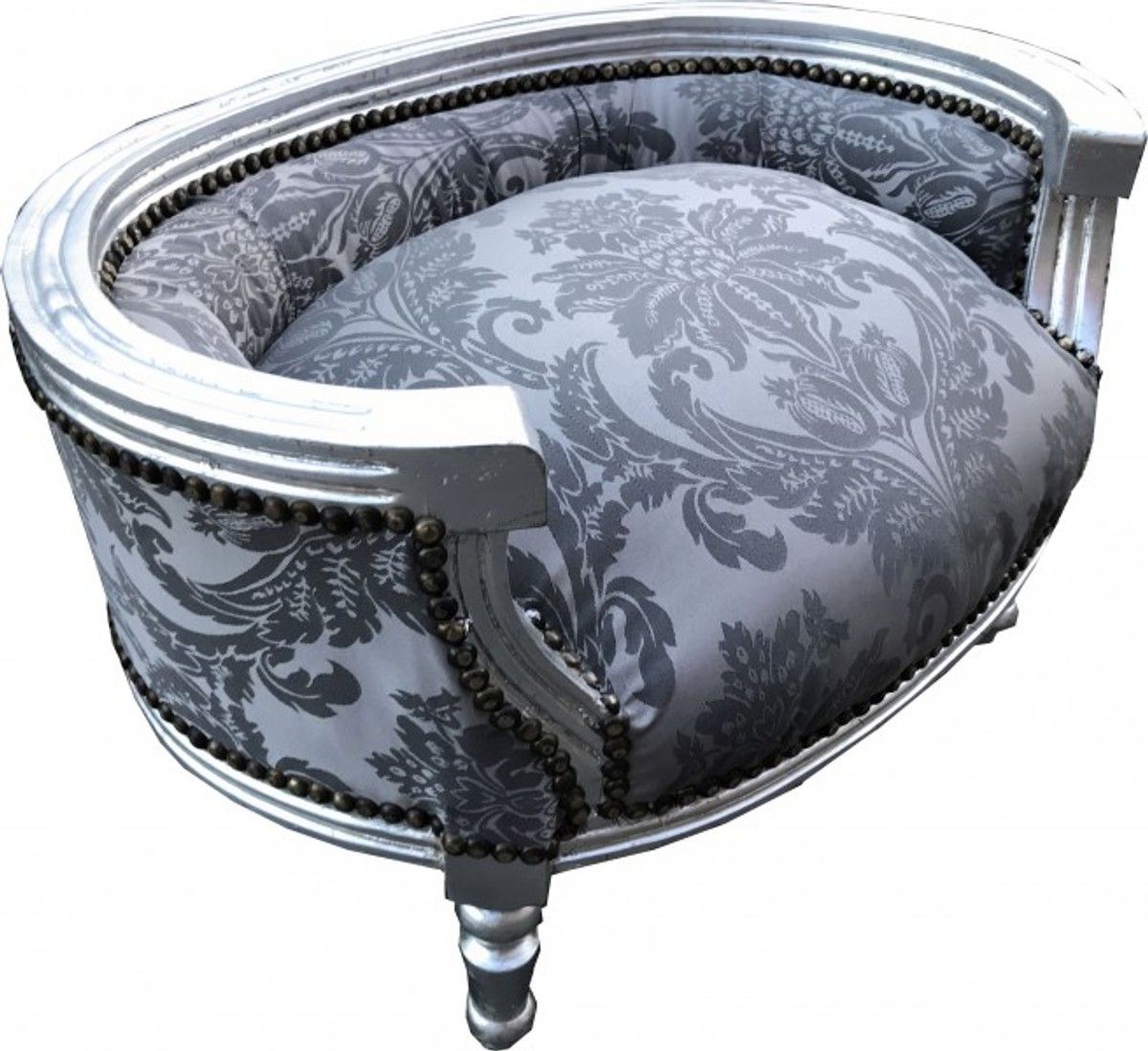 Casa Padrino Barock Hunde & Katzen Sofa in Silber Bouquet Muster / Silber - Hundesess