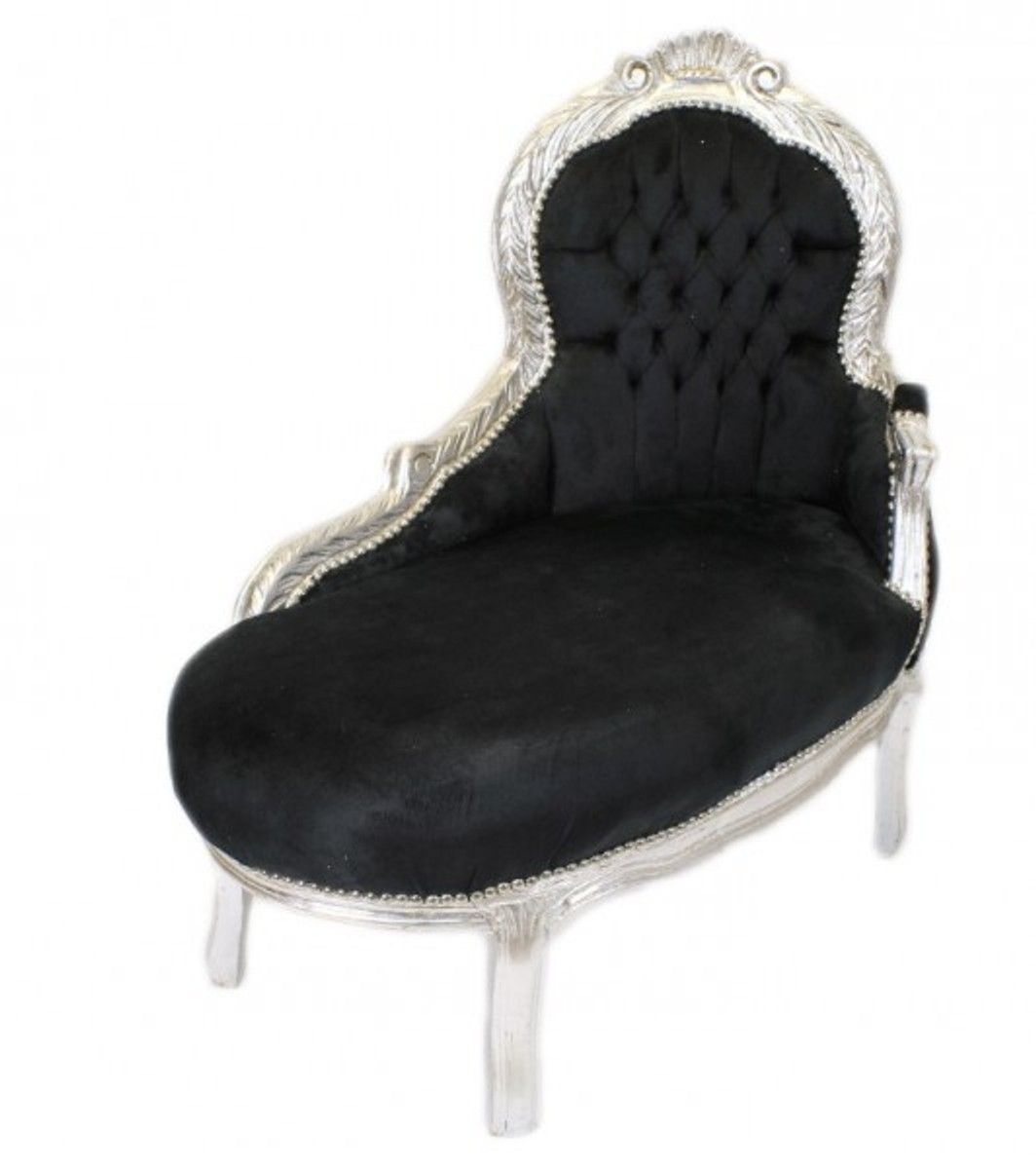 Casa Padrino Barock Kinder Chaiselongue Schwarz / Silber Mod2 - Barock Möbel
