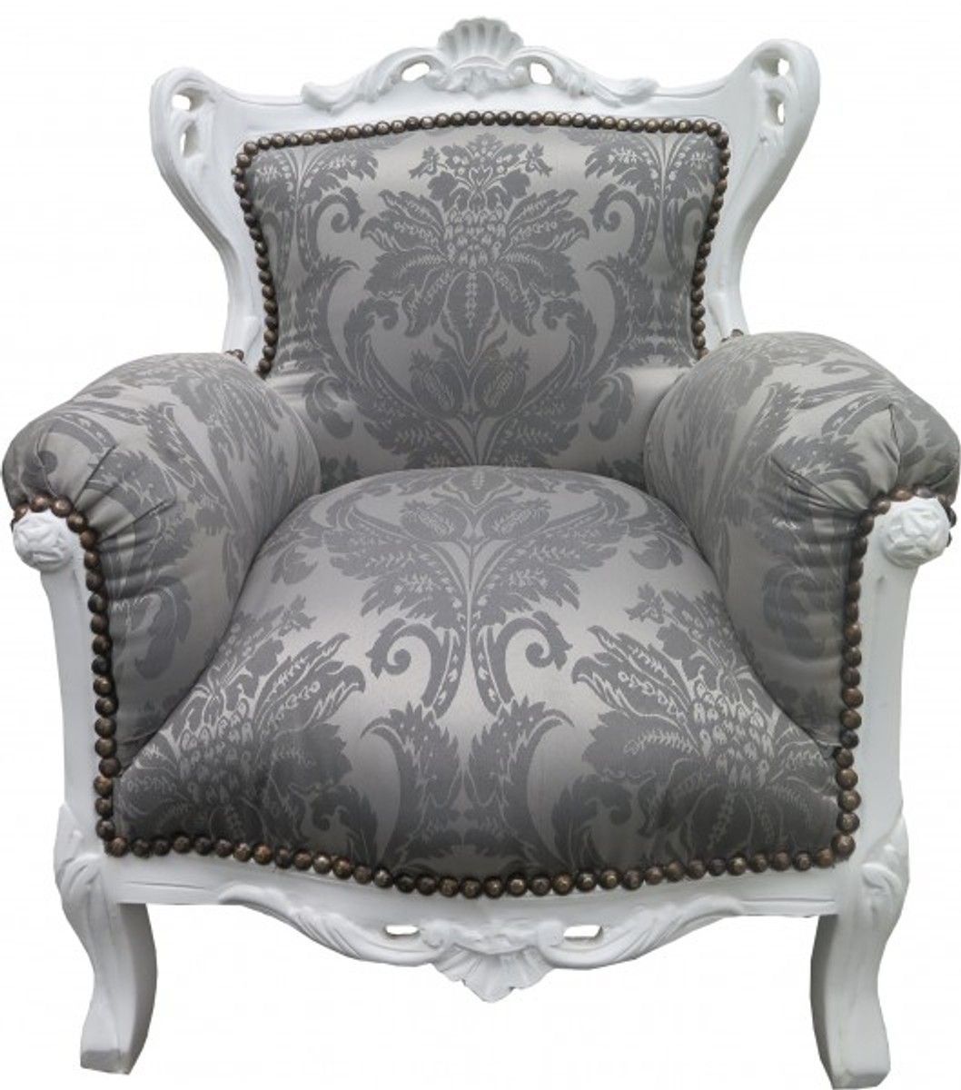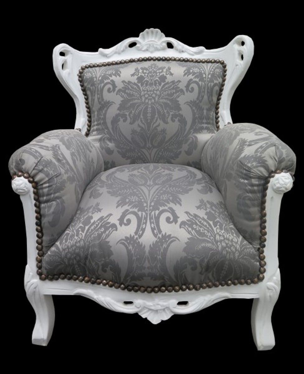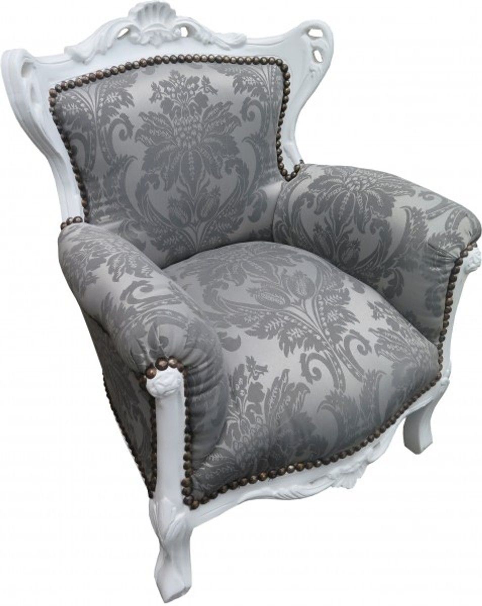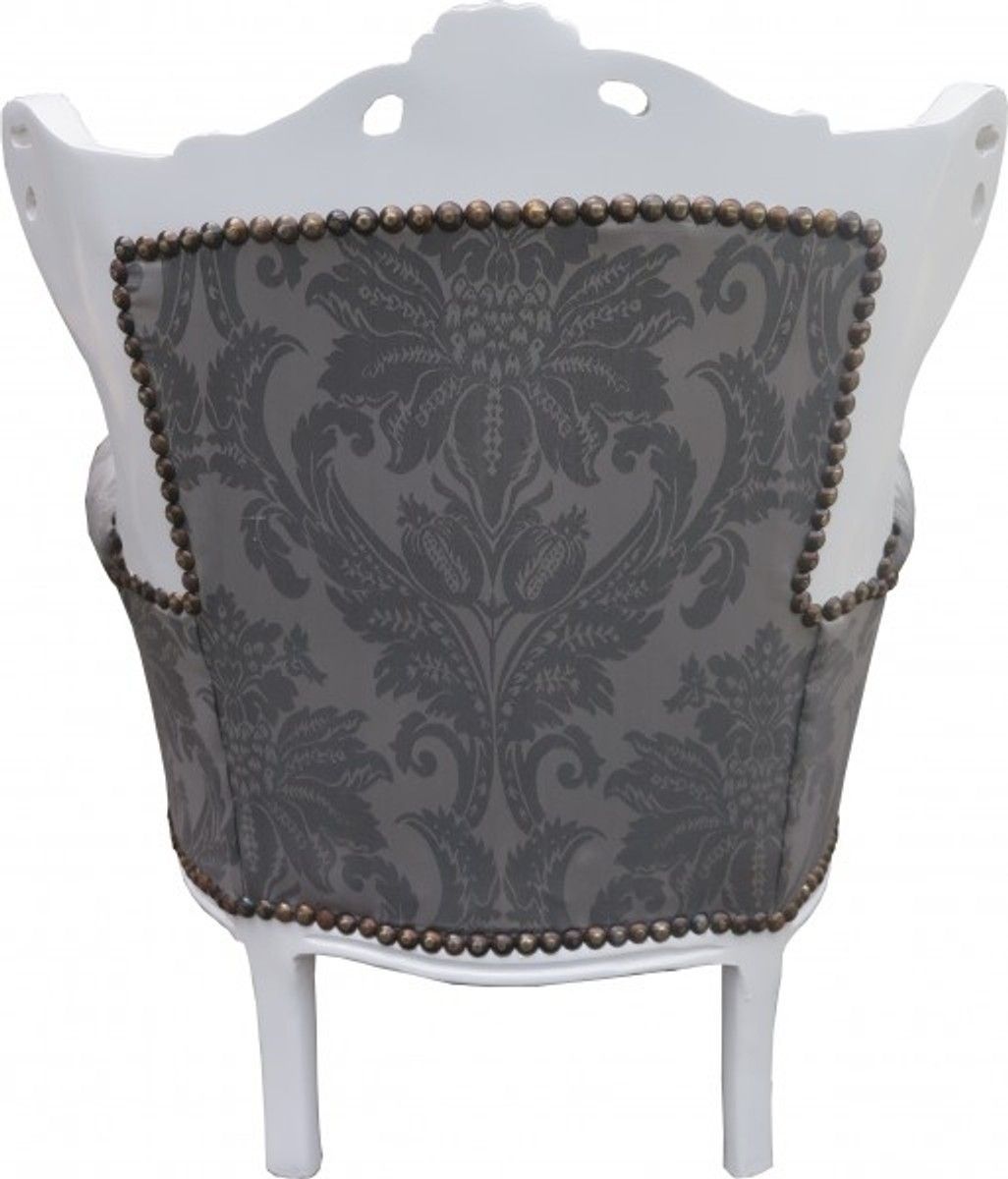 Casa Padrino Barock Kinder Sessel Grau Barock Muster / Weiss - Barock Möbel - Limited