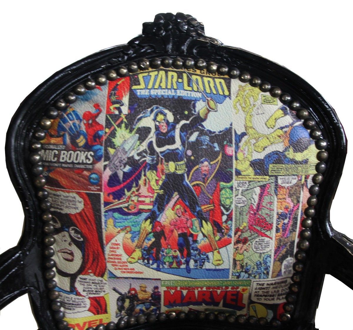 Casa Padrino Barock Kinder Stuhl Comic Lederoptik / Schwarz - Armlehnstuhl