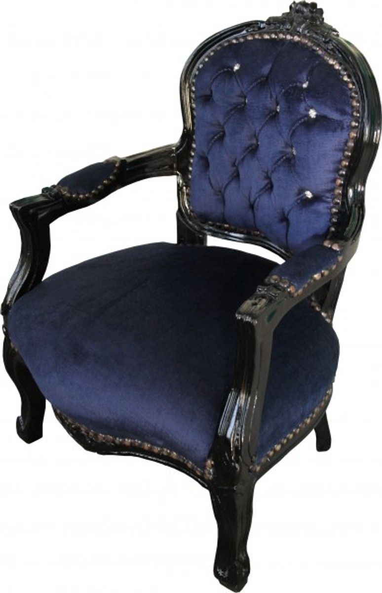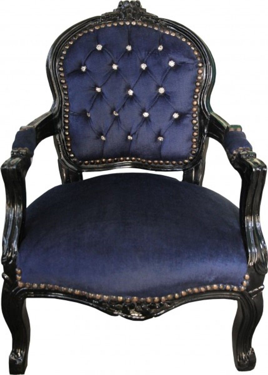 Casa Padrino Barock Kinder Stuhl Royalblau / Schwarz mit Bling Bling Glitzersteinen