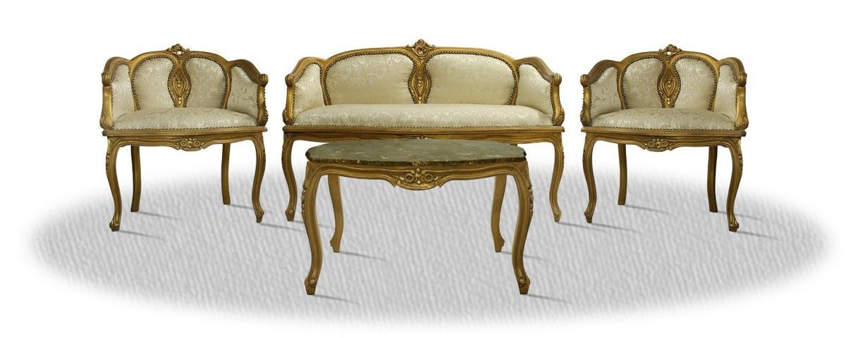 Casa Padrino Barock Salon Set mit Sitzbank 2 Stühlen und Tisch - Barock Hotel Möbel
