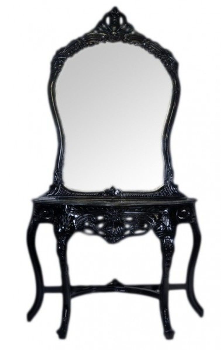 Casa Padrino Barock Spiegelkonsole Schwarz mit Marmorplatte - Spiegel Konsole - Schmi
