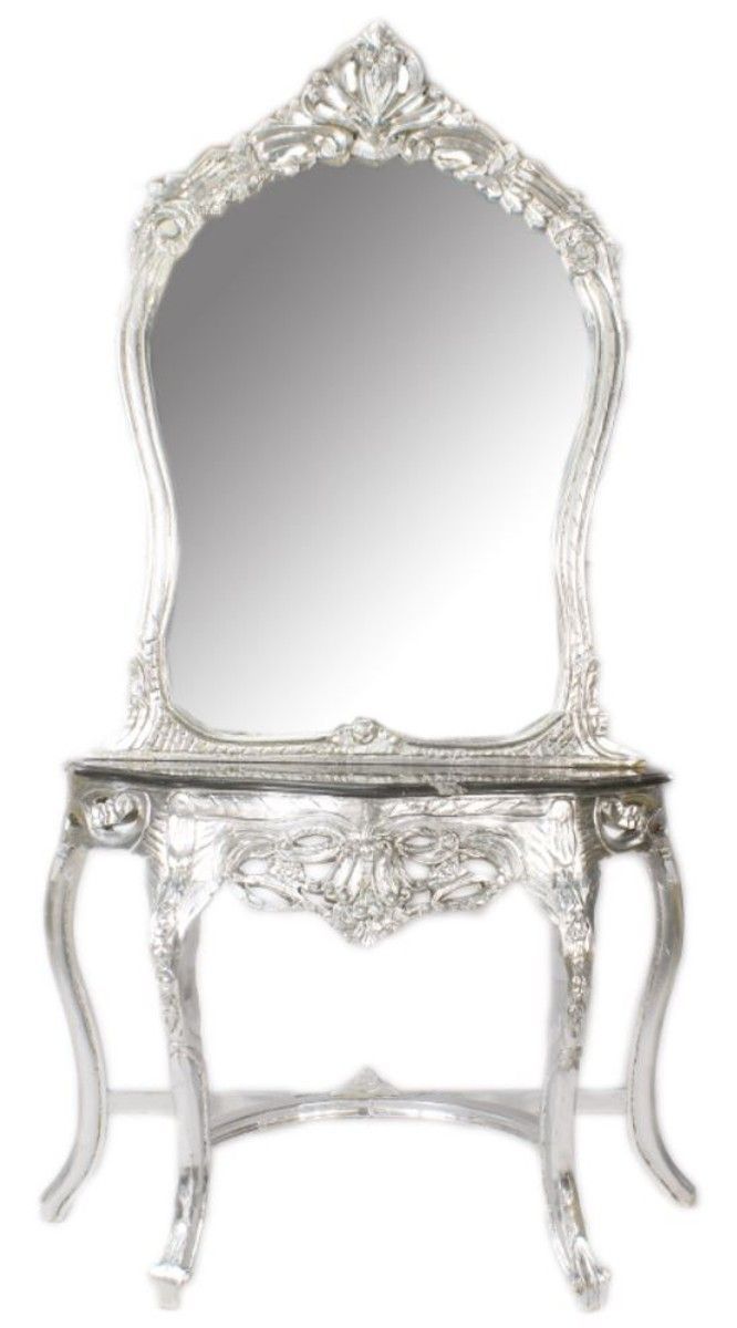 Casa Padrino Barock Spiegelkonsole Silber / Schwarz 95 x 40 x H. 190 cm - Barockstil