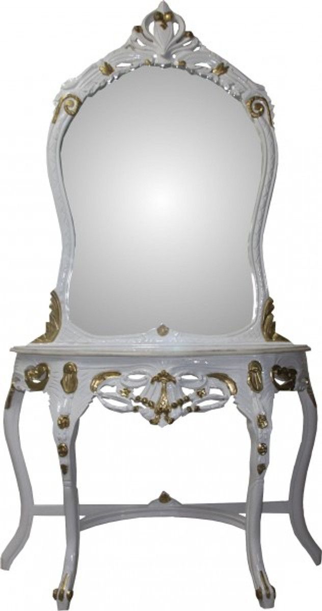 Casa Padrino Barock Spiegelkonsole Weiß/Gold mit Marmorplatte - Konsole - Schminkkon