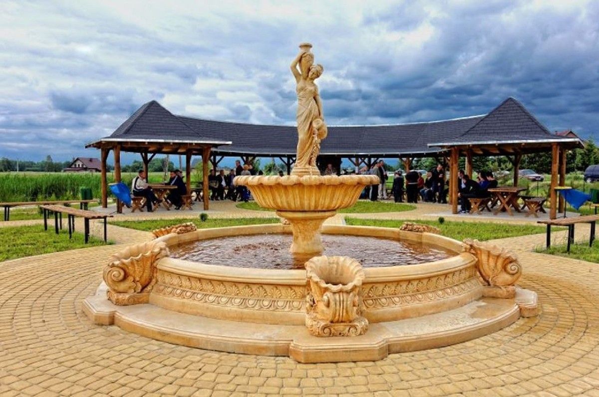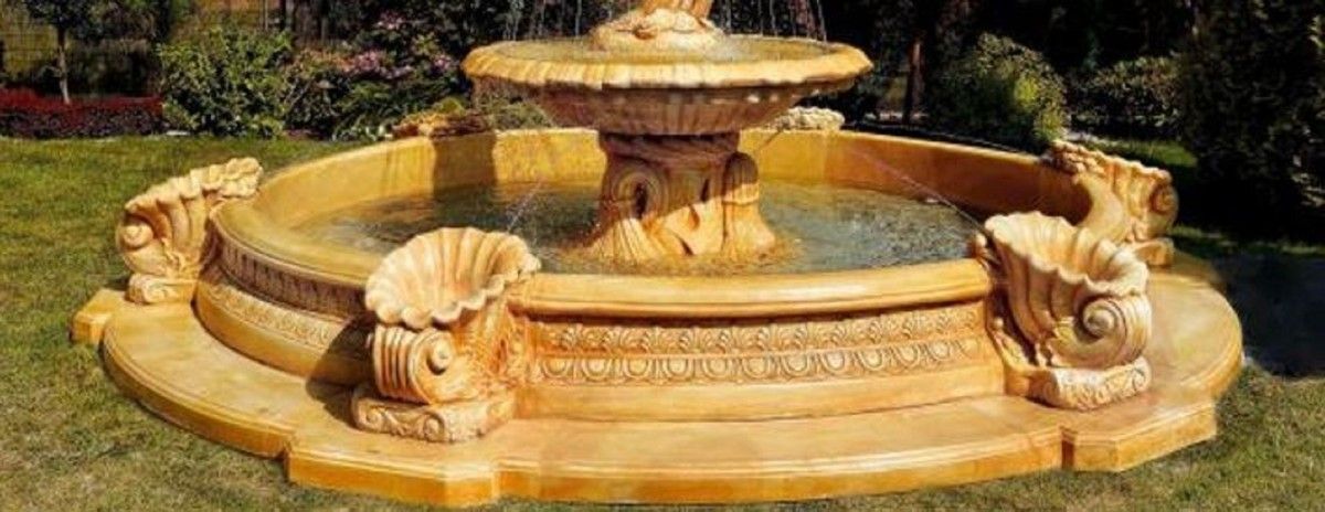 Casa Padrino Barock Springbrunnen Umrandung Beige Ø 445 x H. 58 cm - Runde Gartenbrun