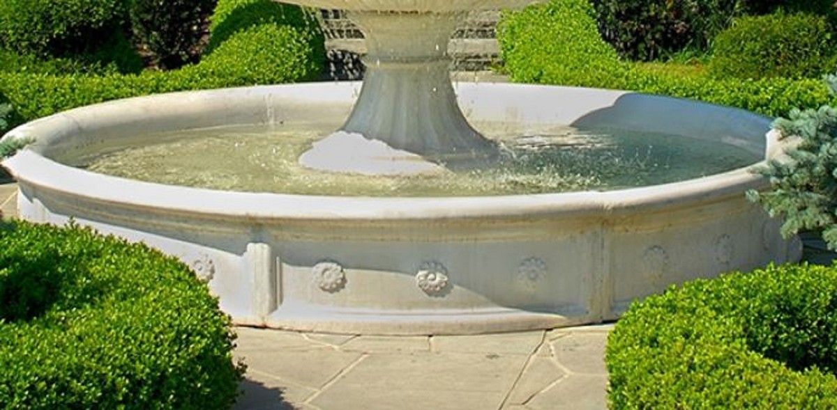 Casa Padrino Barock Springbrunnen Umrandung Weiß Ø 265 x H. 40 cm - Runde Gartenbrunn