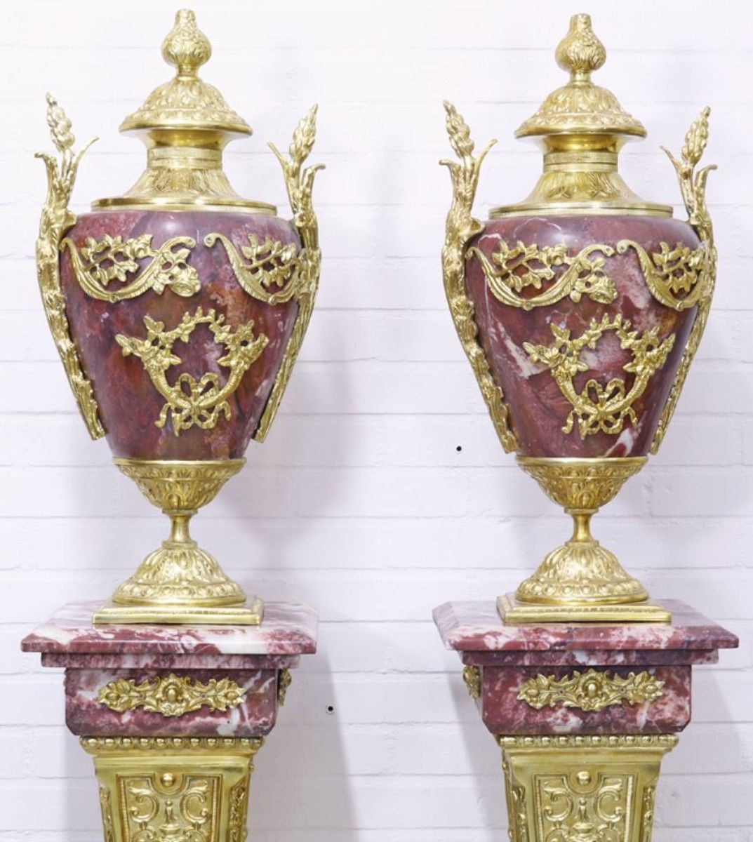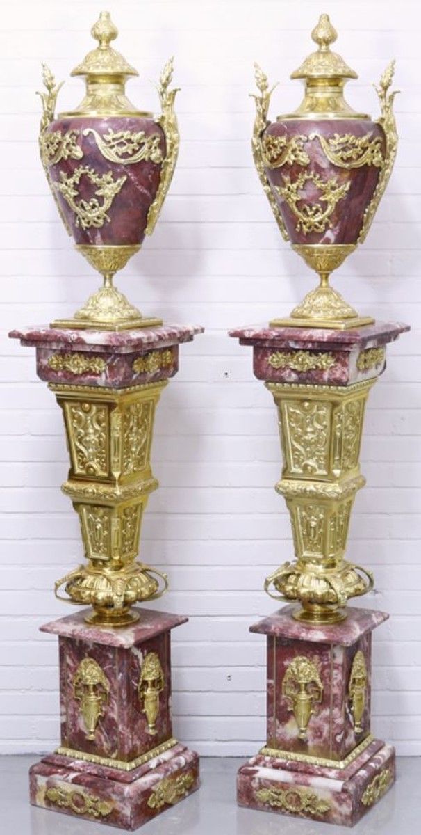 Casa Padrino Barock Vasen mit Marmor Säulen Set Rot / Gold 30 x 30 x H. 180 cm - Edel