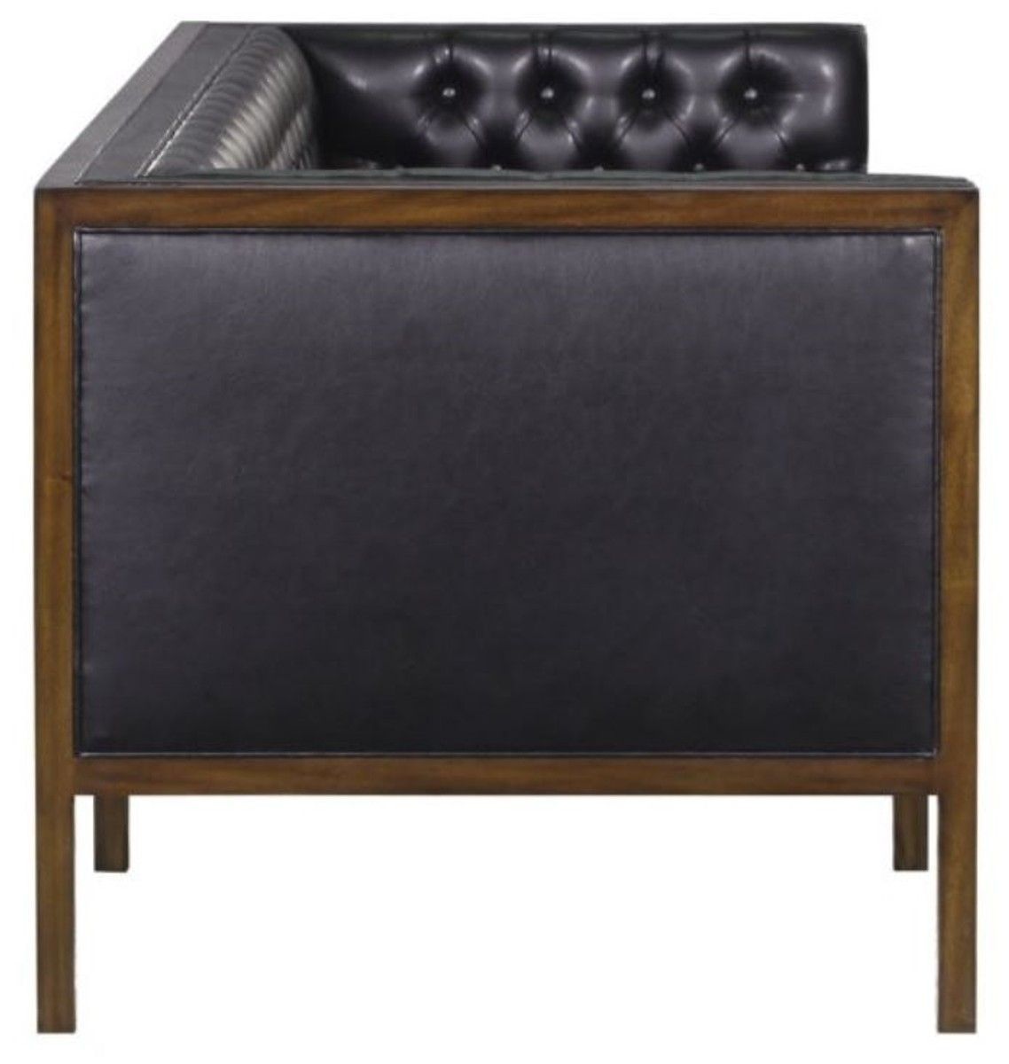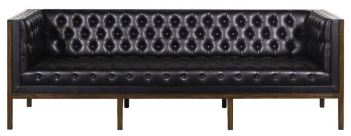 Casa Padrino Chesterfield Echtleder 3-Sitzer Sofa Schwarz / Braun 213 x 78 x H. 72 cm