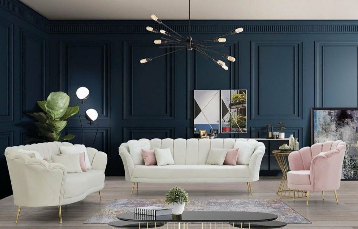 Casa Padrino Designer Art Deco Wohnzimmer Set Creme / Rosa / Gold - 2 Sofas & 2 Sesse
