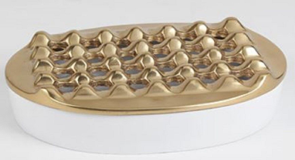 Casa Padrino Designer Aschenbecher Antik Messingfarben / Weiß Ø 20 cm