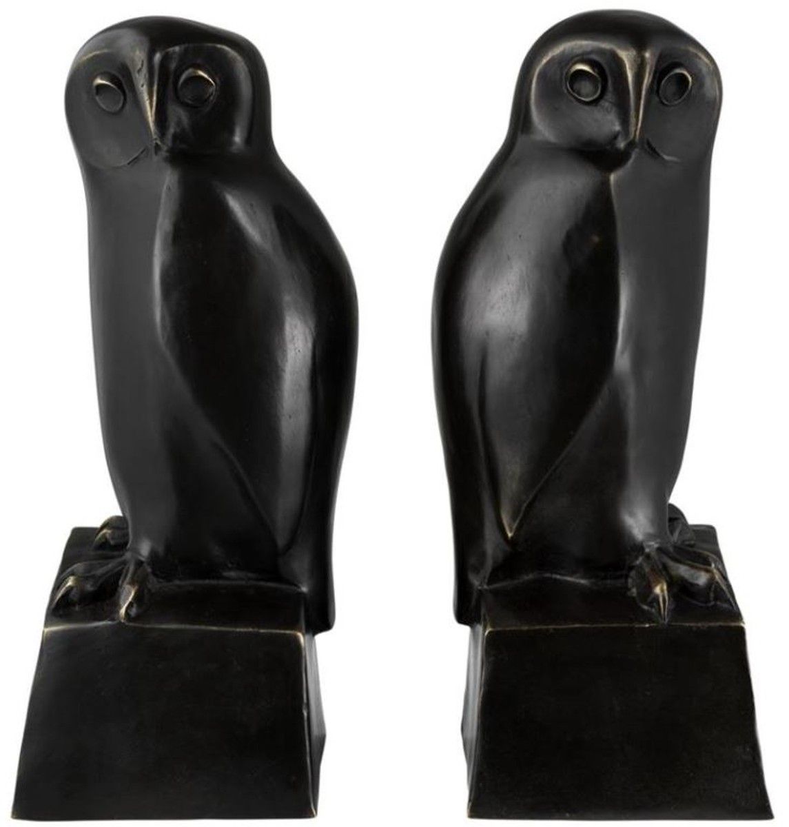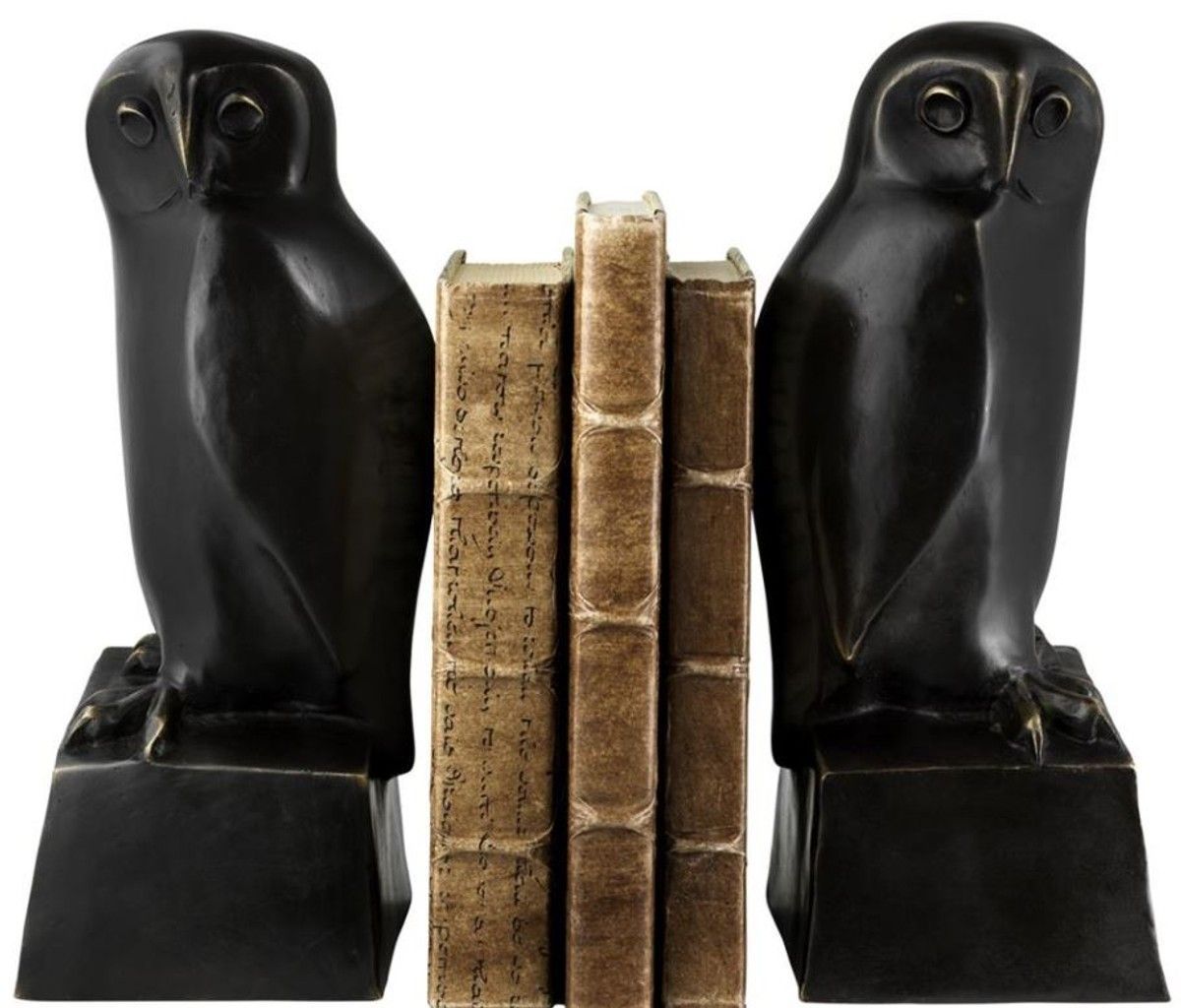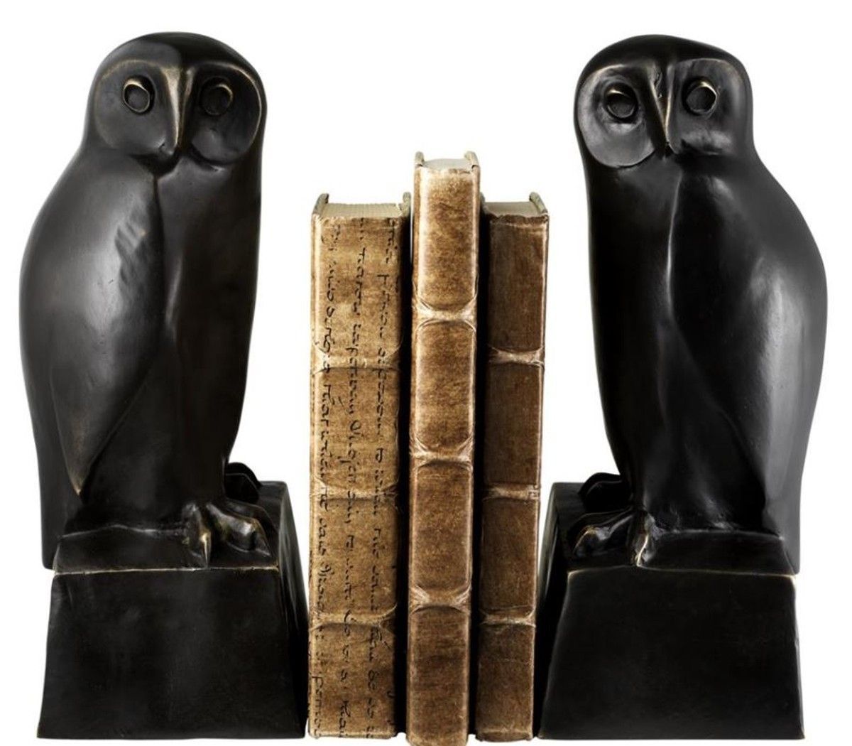 Casa Padrino Designer Bronze Eulen Buchstützen 2er Set - Luxus Bronzefiguren
