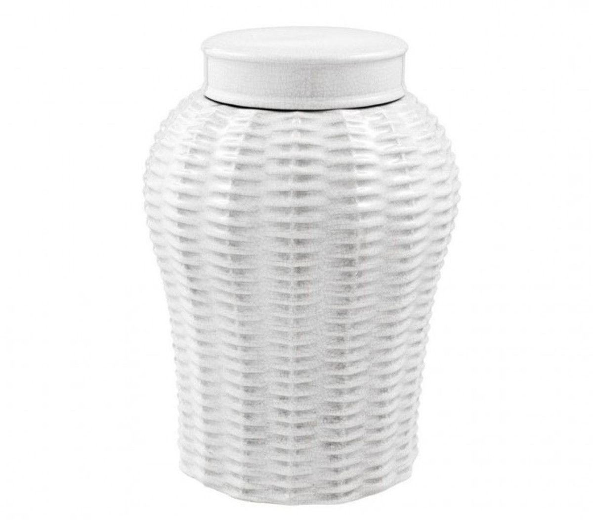 Casa Padrino Designer Keramik Vase mit Deckel Weiß Durchmesser 26 x H. 36,5 cm - Luxu