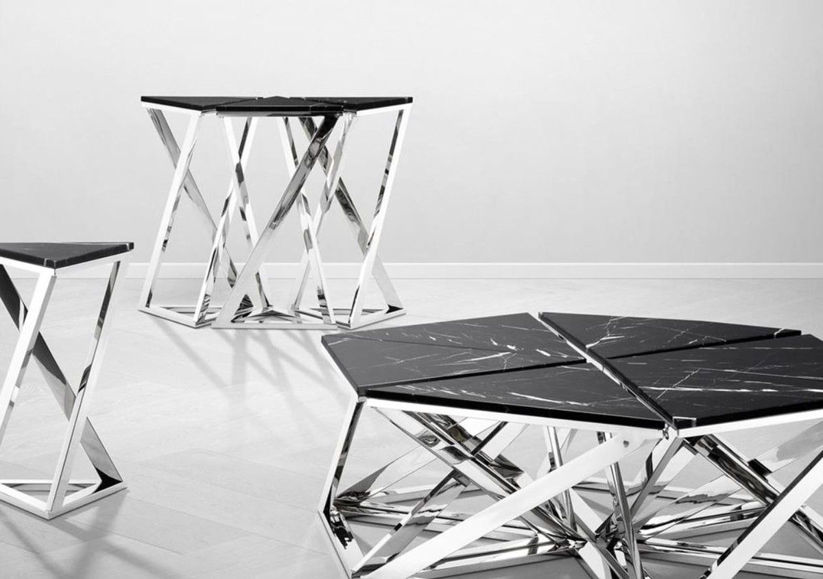 Casa Padrino Designer Konsole 3er Set Silber 95 x 41 x H. 80,5 cm - Luxus Kollektion