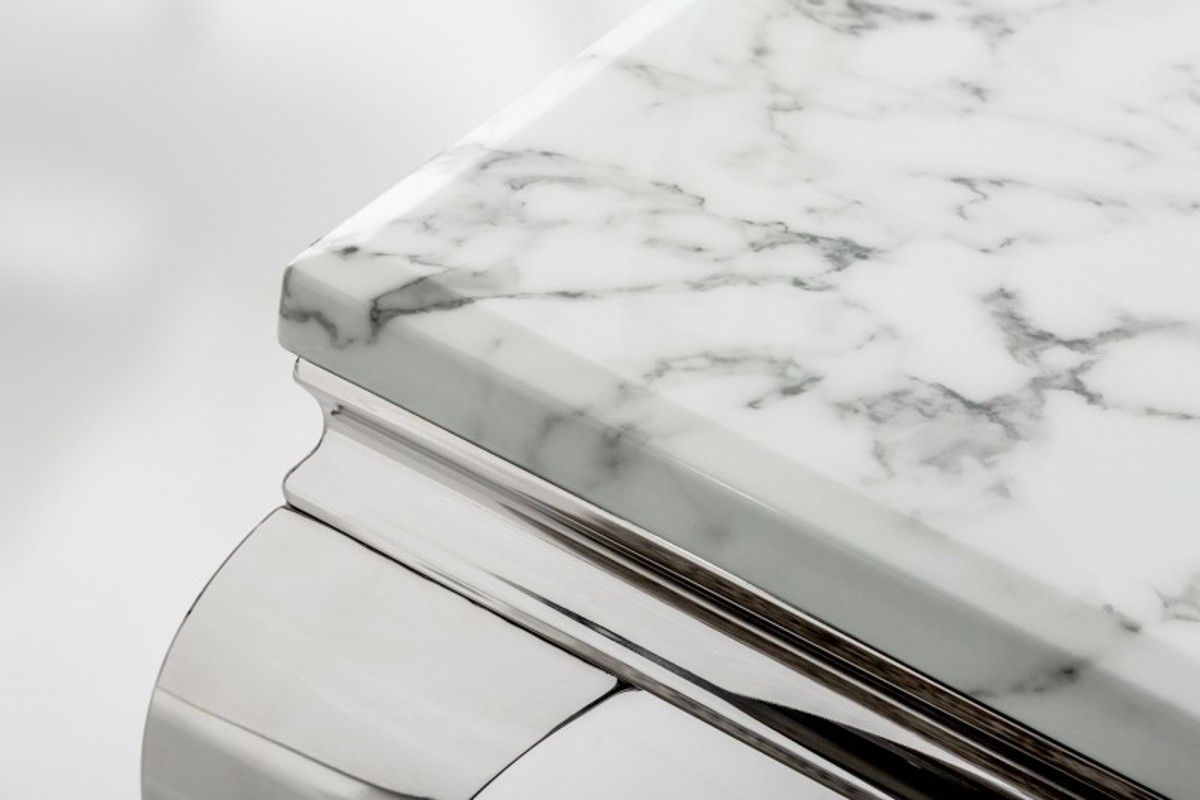 Casa Padrino Designer Konsole mit Marmor 140 cm Weiss / Grau - Modern Barock