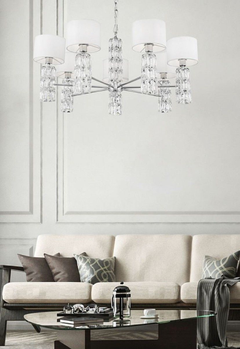 Casa Padrino Designer Kronleuchter Silber / Weiß Ø 80 x H. 37,2 cm - Moderner Metall