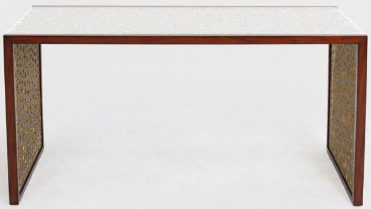 Casa Padrino Designer Schreibtisch mit Glasplatte Braun / Bronze / Gold 140 x 55 x H