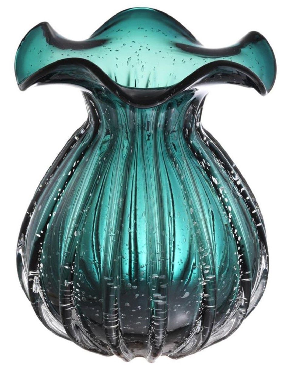 Casa Padrino Glas Vase / Blumenvase Grün Ø 26 x H. 33 cm - Luxus Wohnzimmer Deko