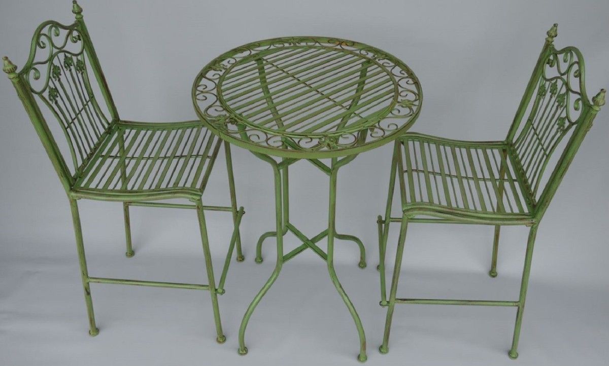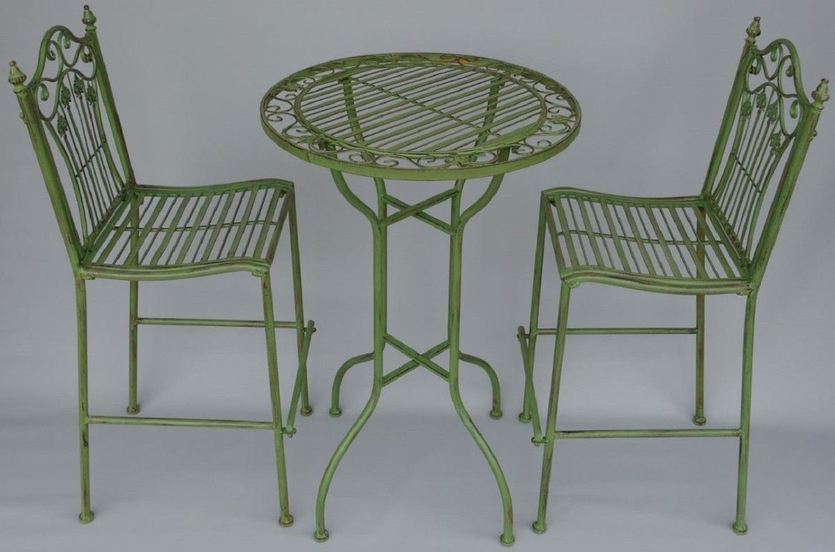 Casa Padrino Jugendstil Gartenmöbel Set Grün Rostfarben - 1 Bartisch & 2 Barstühle