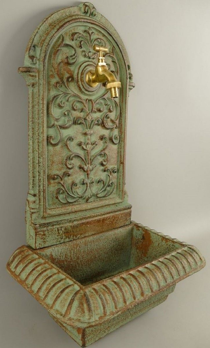 Casa Padrino Jugendstil Wandbrunnen Hellgrün / Rostfarben 36 x 24 x H. 65 cm - Nostal
