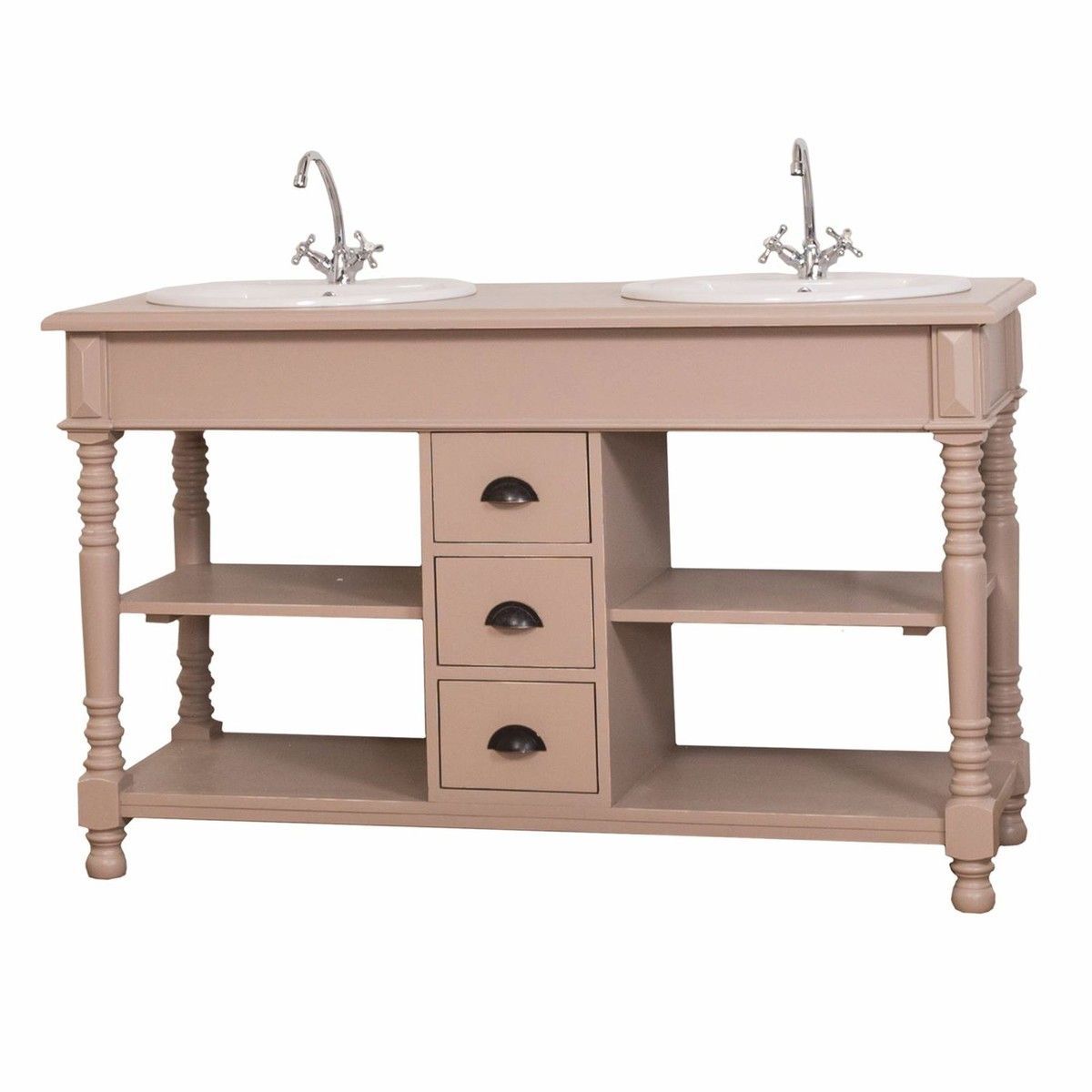 Casa Padrino Landhausstil Doppel Waschtisch mit 2 Waschbecken Hellbraun 150 cm