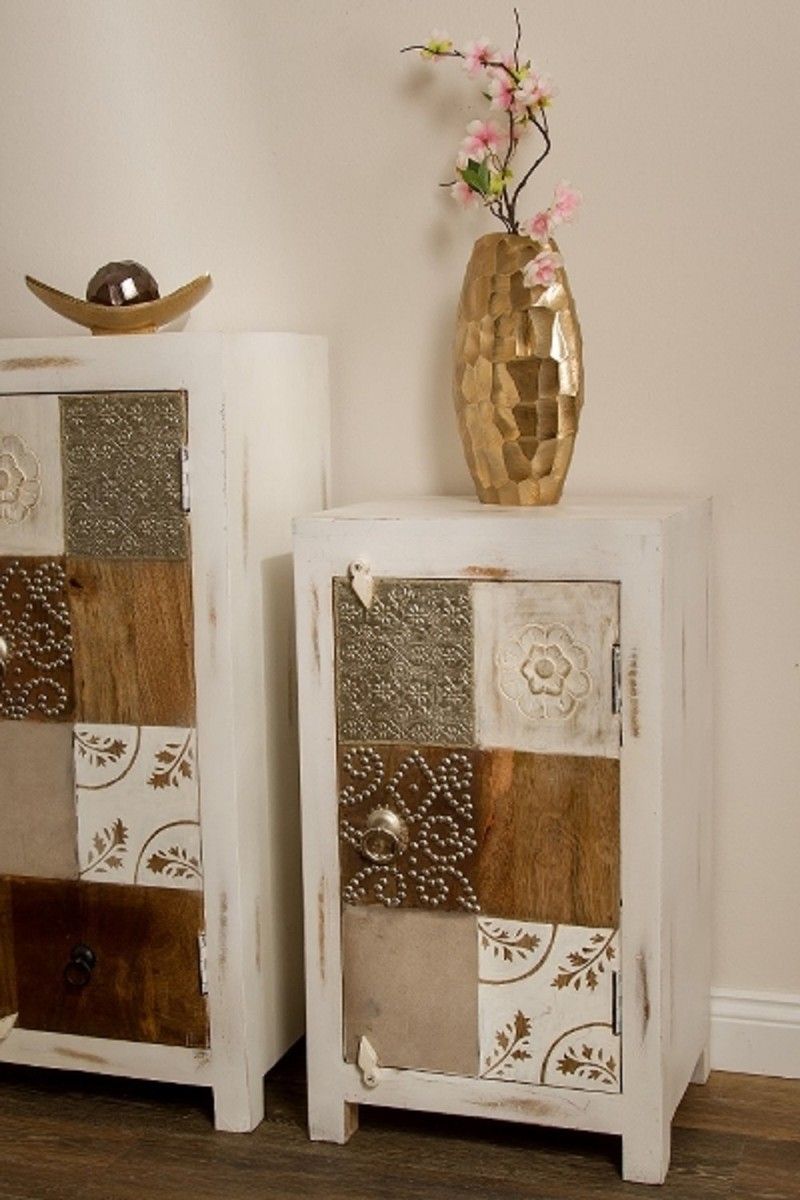 Casa Padrino Landhausstil Shabby Chic Kommode Antik Weiß / Mehrfarbig 40 x 32 x H. 70