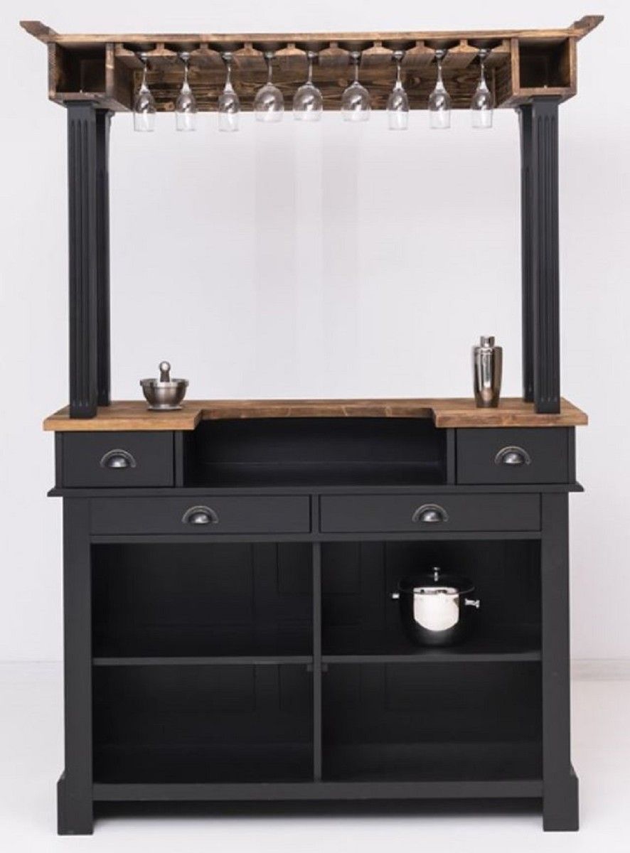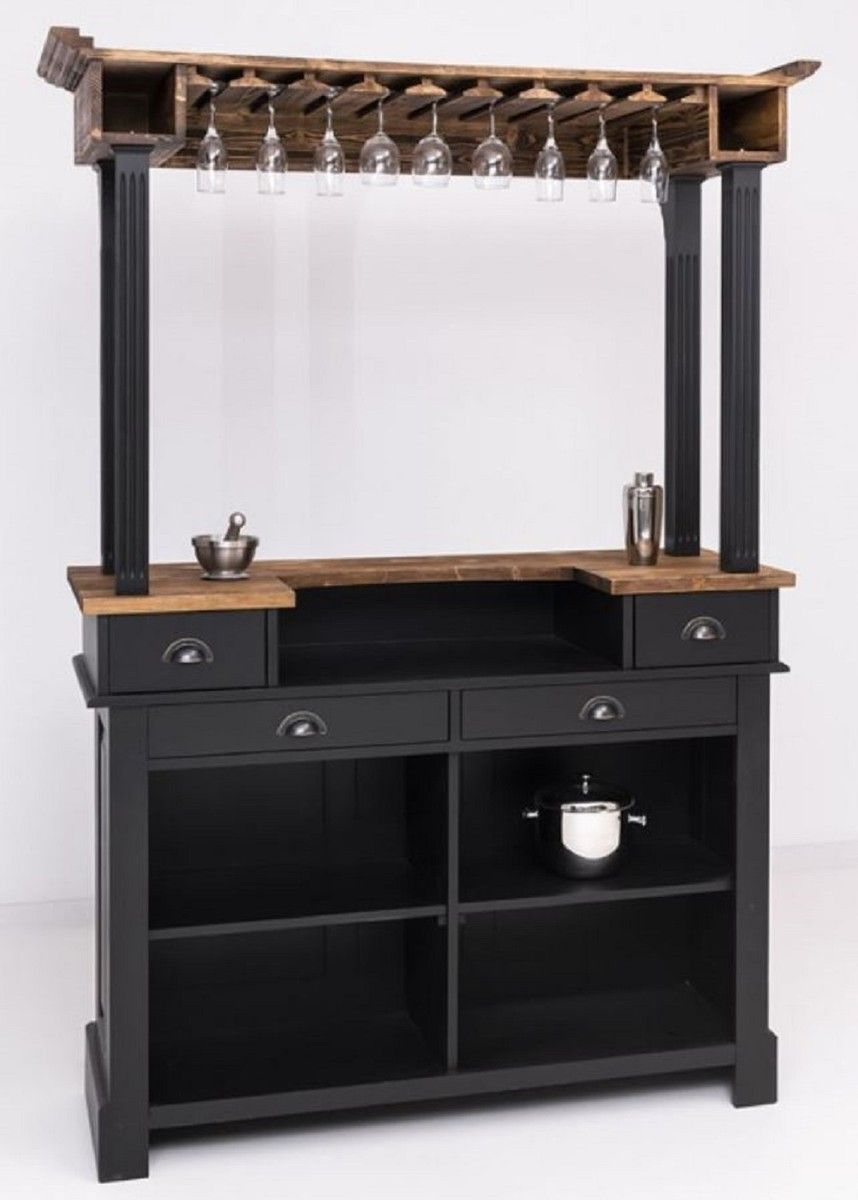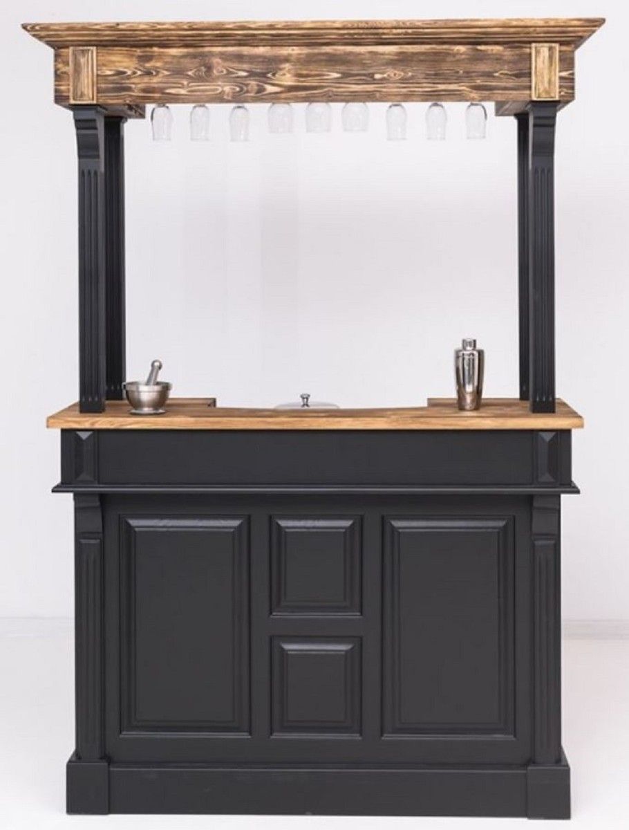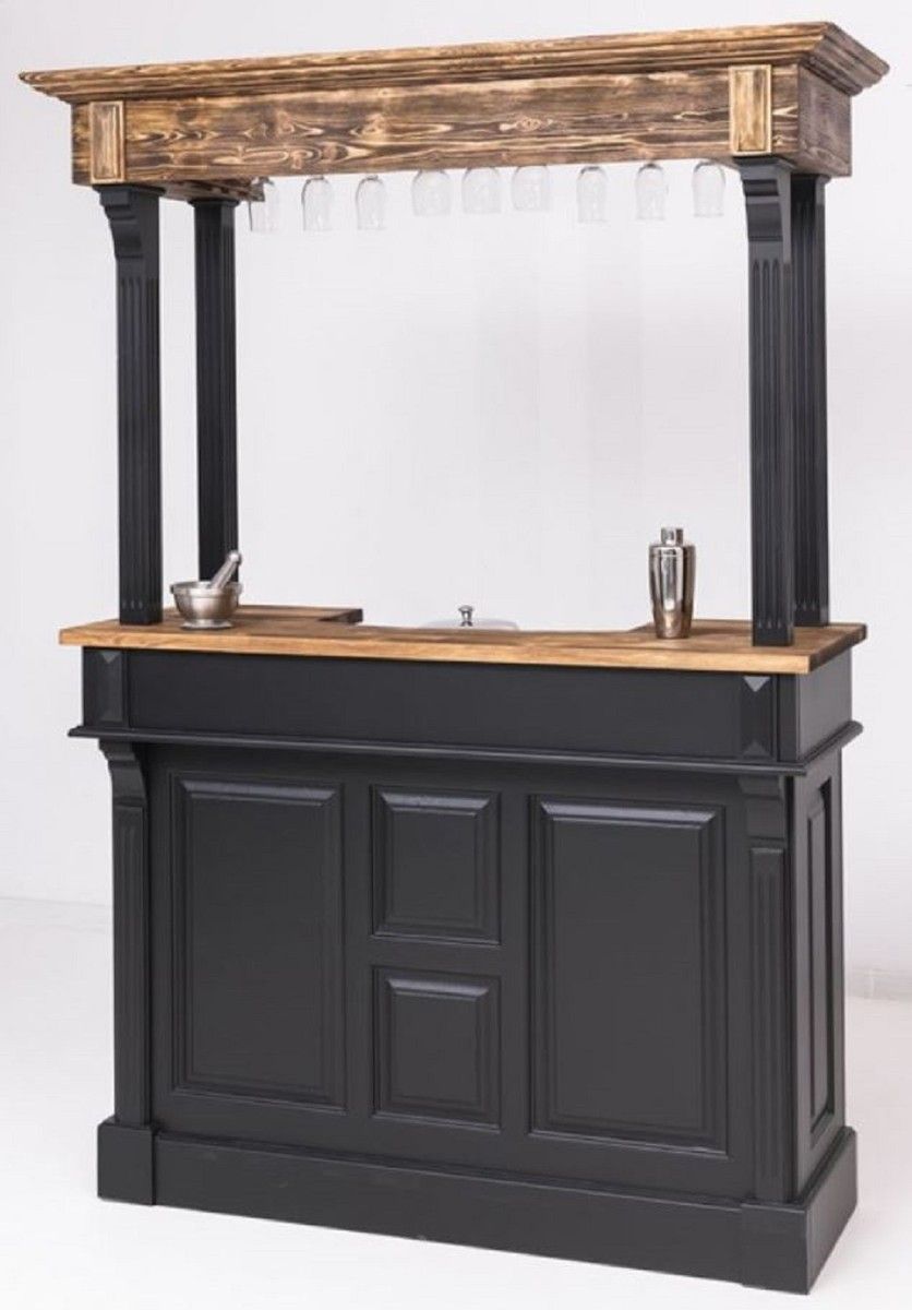 Casa Padrino Landhausstil Theke Schwarz / Braun 150 x 56 x H. 210 cm - Massivholz The