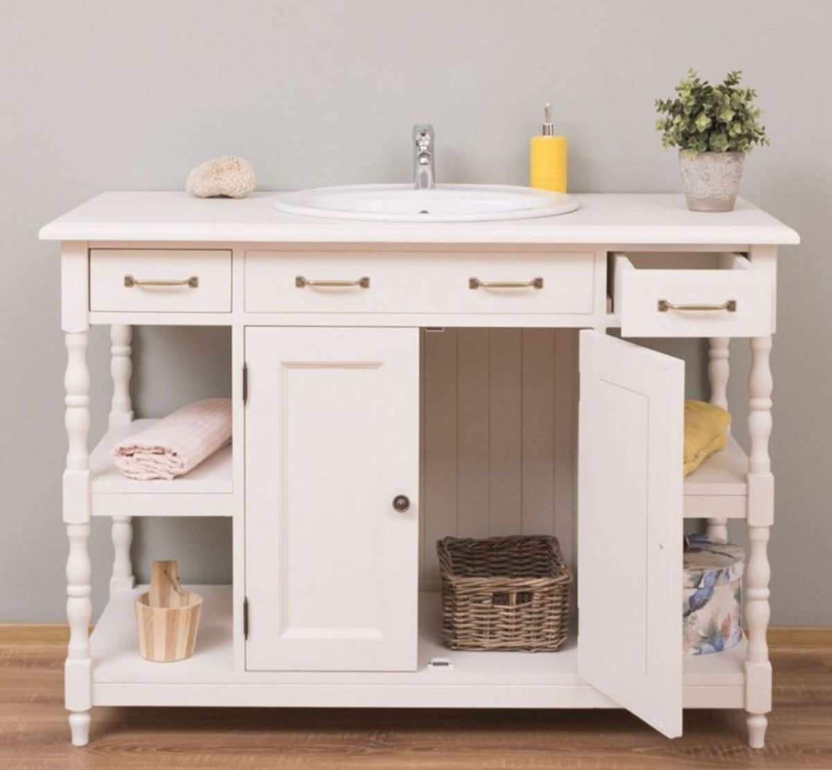 Casa Padrino Landhausstil Waschtisch Weiß 128 x 54 x H. 91 cm - Massivholz Waschbecke