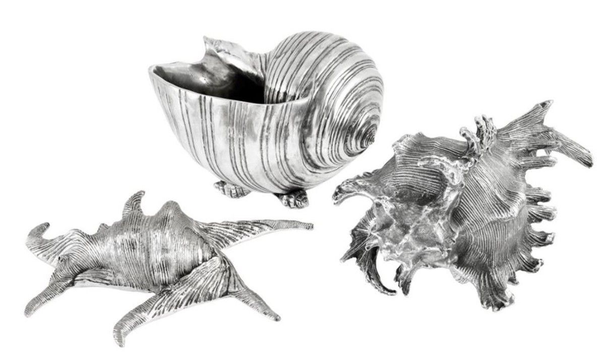 Casa Padrino Luxus Aluminium Muscheln Antik Silber - Deko 3er Set
