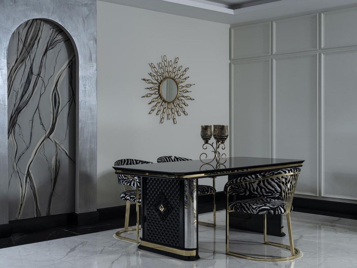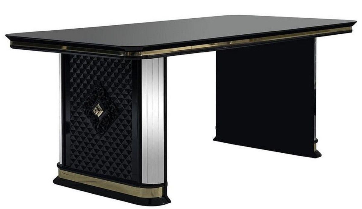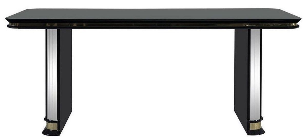 Casa Padrino Luxus Art Deco Esstisch Schwarz / Gold - Handgefertigter Massivholz Küch