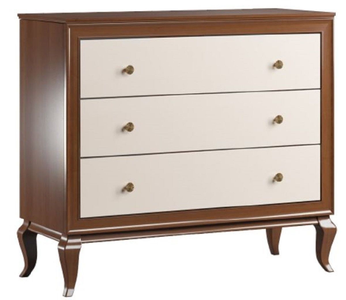 Casa Padrino Luxus Art Deco Massivholz Kommode mit 3 Schubladen Dunkelbraun / Cremefa