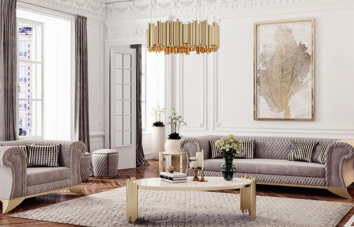 Casa Padrino Luxus Art Deco Sofa Grau / Gold - Wohnzimmer Sofa - Hotel Sofa - Luxus A