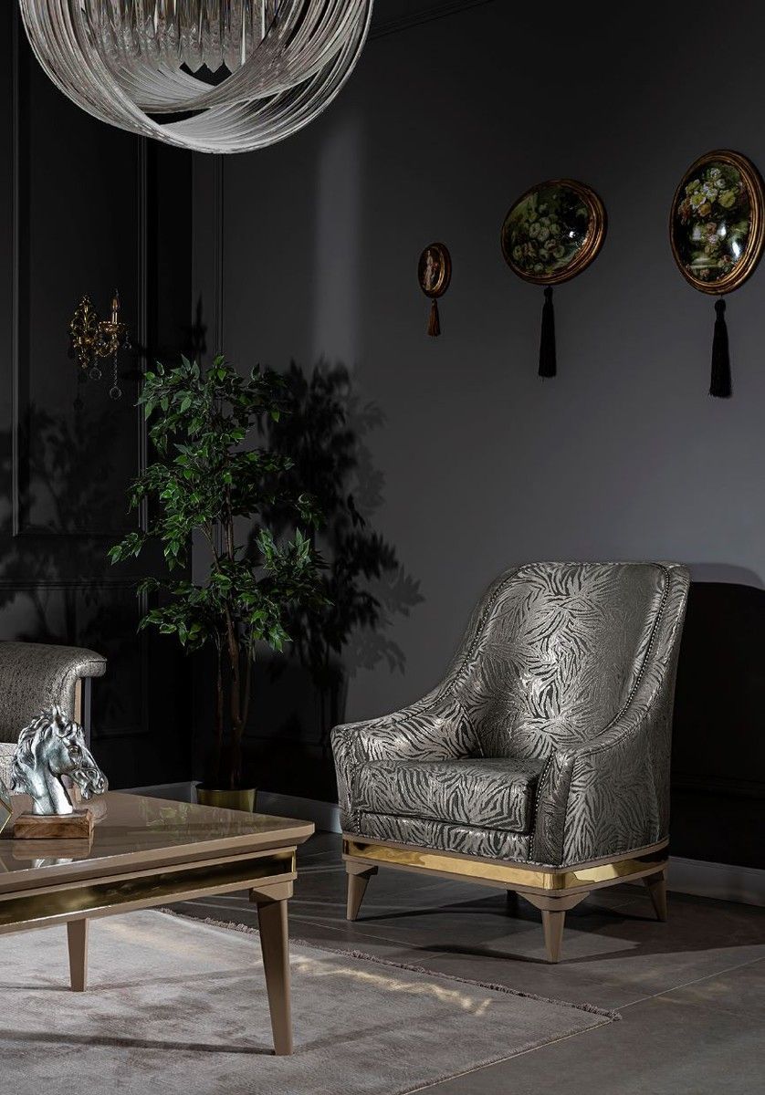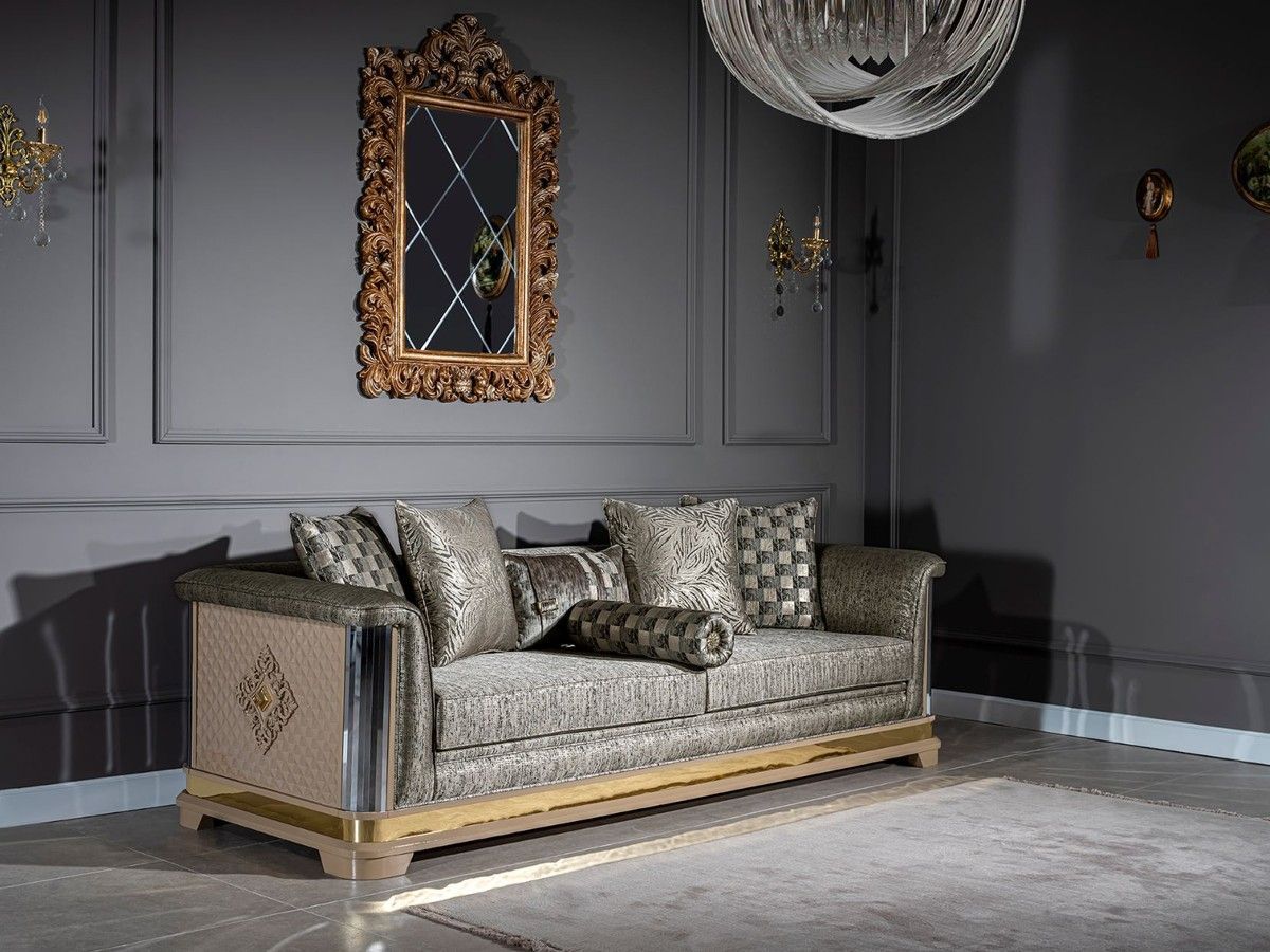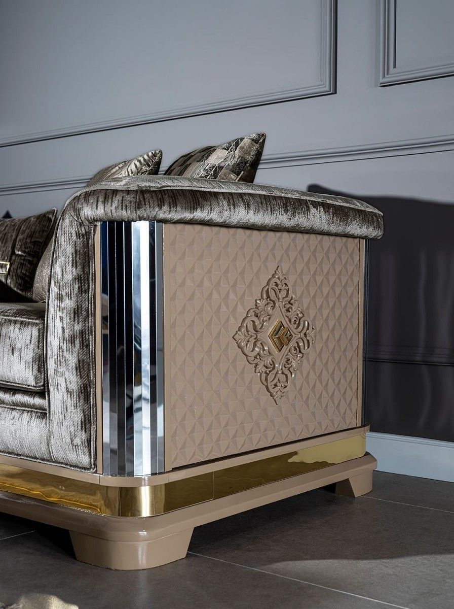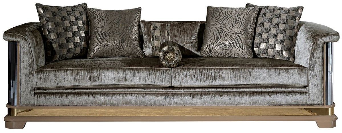 Casa Padrino Luxus Art Deco Wohnzimmer Set Silber / Schwarz / Beige / Gold - 2 Sofas