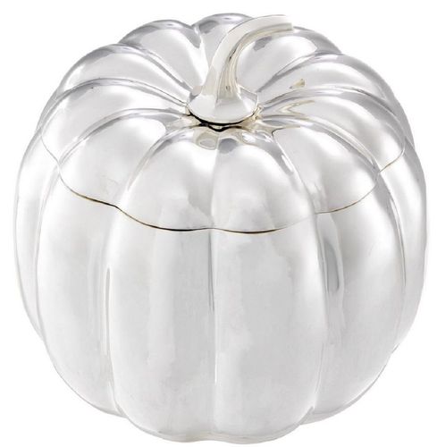 Casa Padrino Luxus Aufbewahrungsbox in Kürbisform Silber Ø 21,5 x H. 22 cm - Deko Kür