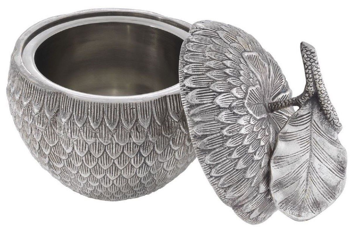 Casa Padrino Luxus Aufbewahrungsbox mit Deckel in Apfelform Antik Silber Ø 18 x H. 20