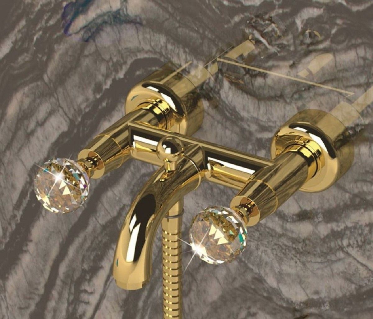 Casa Padrino Luxus Badewannen Armatur mit Handbrause und Schlauch Gold - Aufputz Wann
