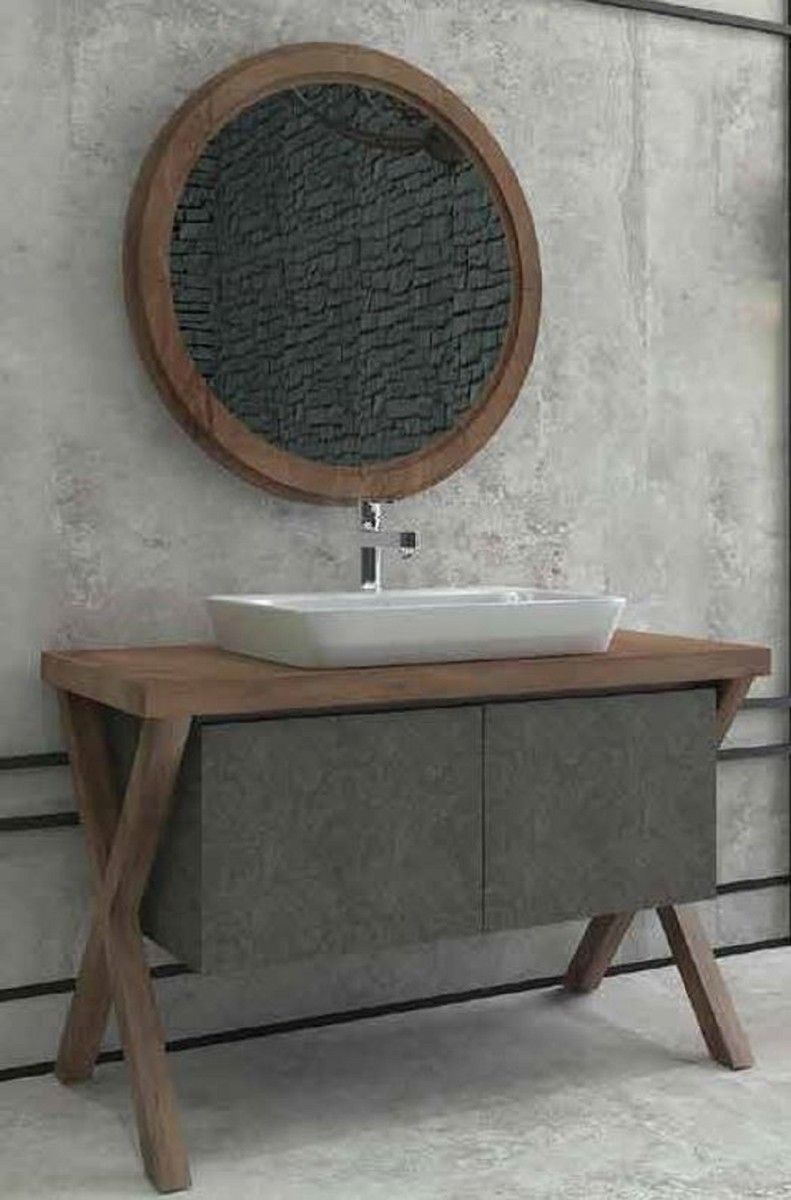 Casa Padrino Luxus Badezimmer Set Dunkelbraun / Dunkelgrau - 1 Waschtisch mit 2 Türen