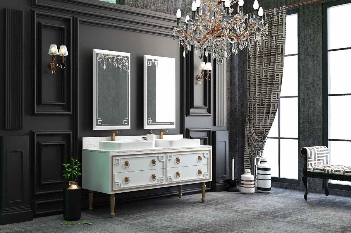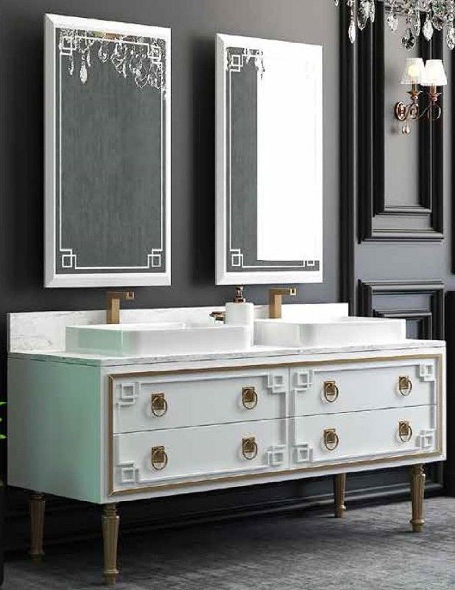 Casa Padrino Luxus Badezimmer Set Weiß / Gold - 1 Waschtisch mit 4 Schubladen und 2 W