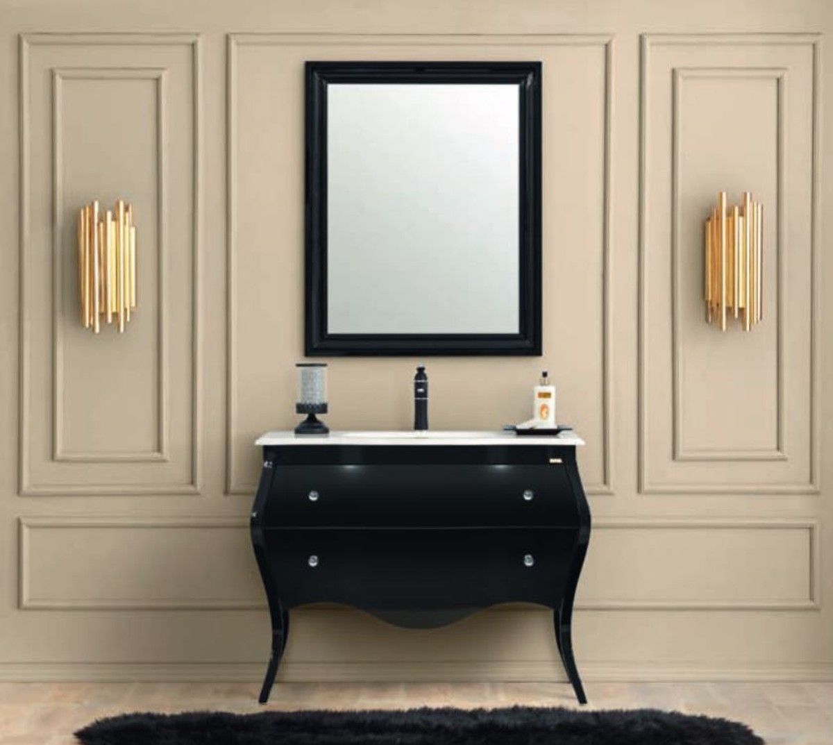 Casa Padrino Luxus Barock Badezimmer Set Schwarz / Weiß - 1 Waschtisch & 1 Waschbecke