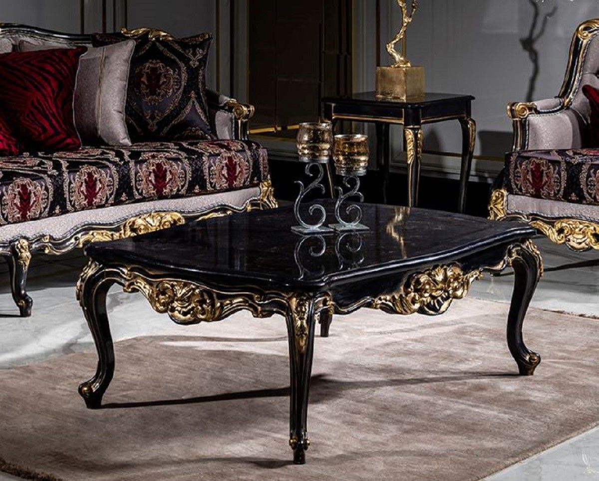 Casa Padrino Luxus Barock Couchtisch Schwarz / Gold - Handgefertigter Massivholz Wohn