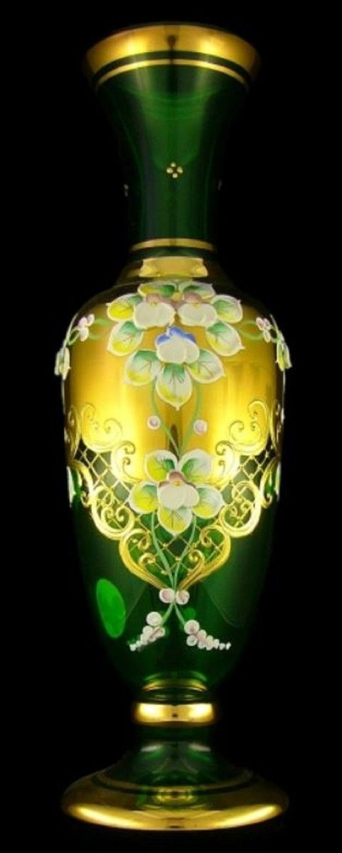 Casa Padrino Luxus Barock Deko Glas Vase Grün / Mehrfarbig / Gold H. 40 cm - Handgefe
