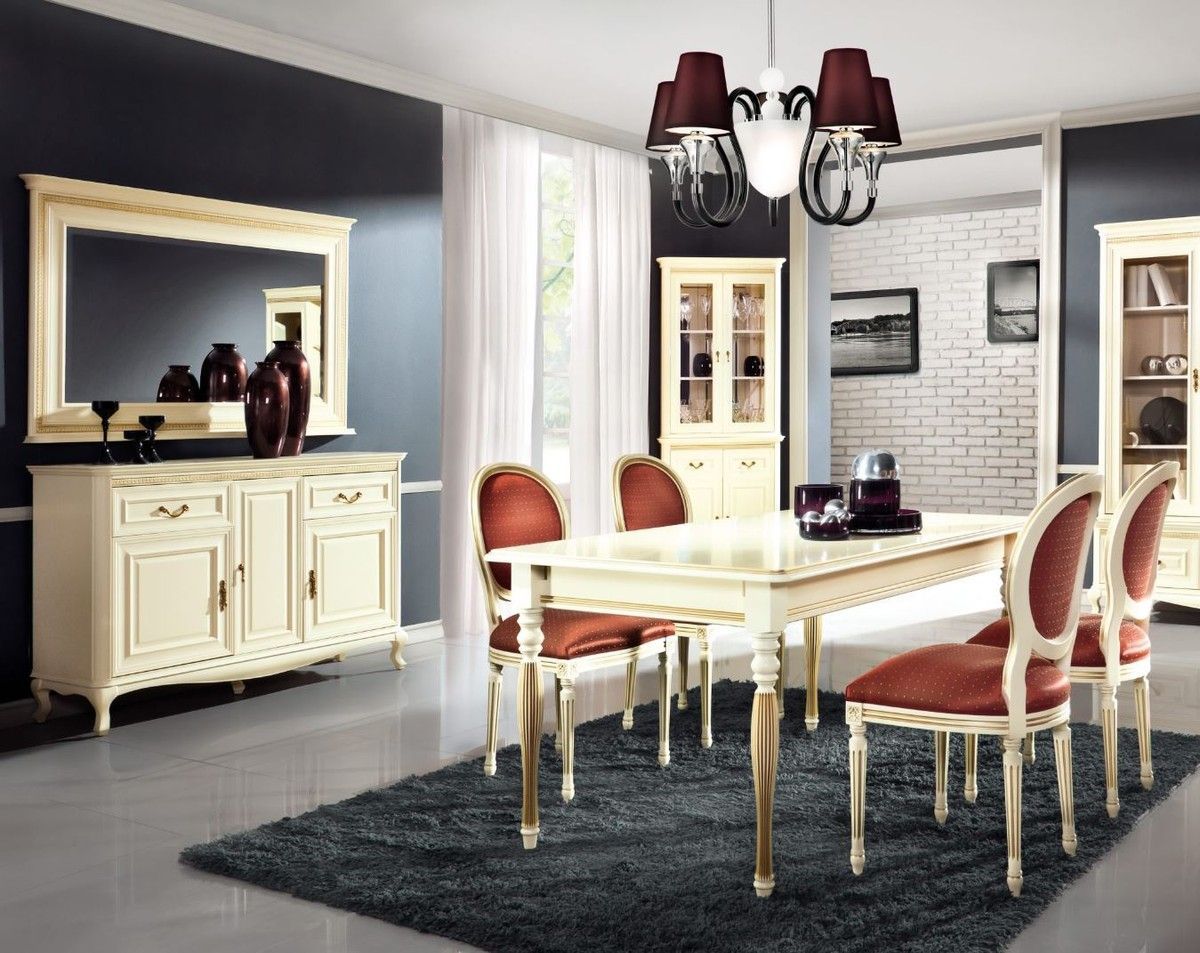 Casa Padrino Luxus Barock Esstisch Creme / Gold 130-330 x 100 x H. 77,5 cm - Ausziehb